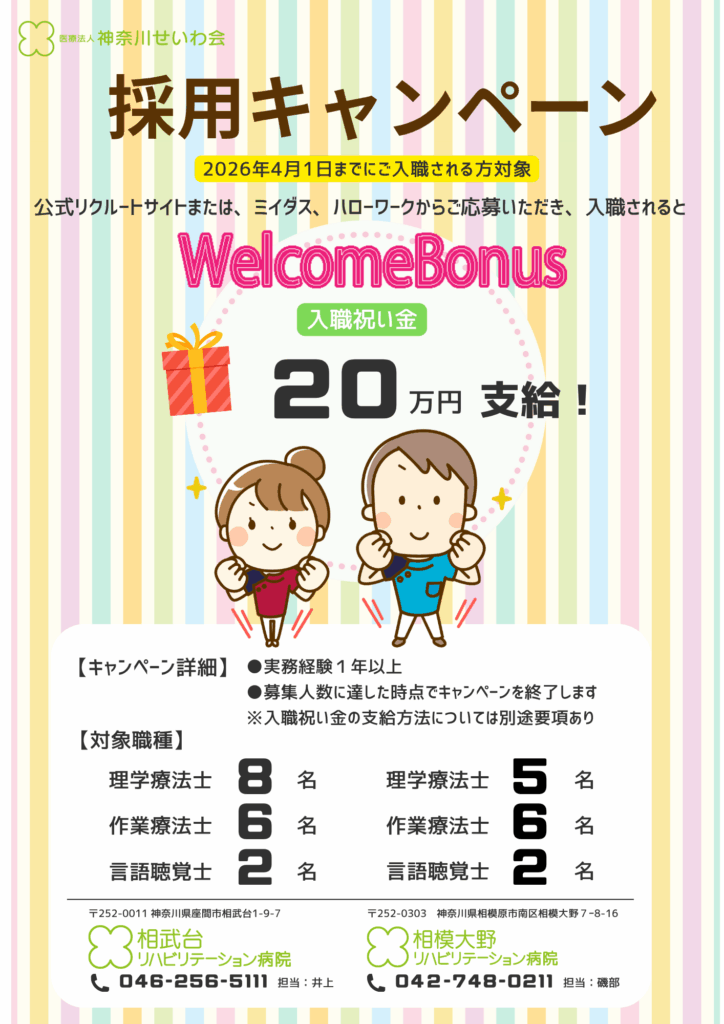 医療法人神奈川せいわ会 相武台リハビリテーション病院、相模大野リハビリテーション病院では、